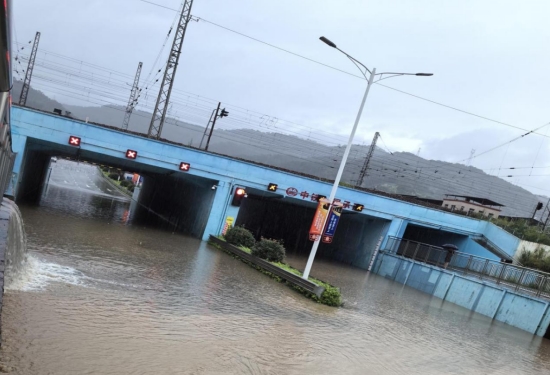 經過現(xiàn)場察看,由于短時間降雨量太大,龍津河水位暴漲高于通道出口頂標高,河水倒灌至下穿通道導致交通中斷,下穿通道水泵房三臺水泵全部啟動抽水也無法滿足排水要求。公司防汛小組到達現(xiàn)場后,連夜組織人員拉好警戒線,設置警示標志,防止車輛進入下穿通道,并調度4輛應急車輛及時排水并清洗路面;同時,提前與鐵路部門、交警部門聯(lián)系,暫時封閉該段線路。經過6小時的不斷抽水,路面已基本暢通,搶險過程未發(fā)生任何險情和人員傷亡。
