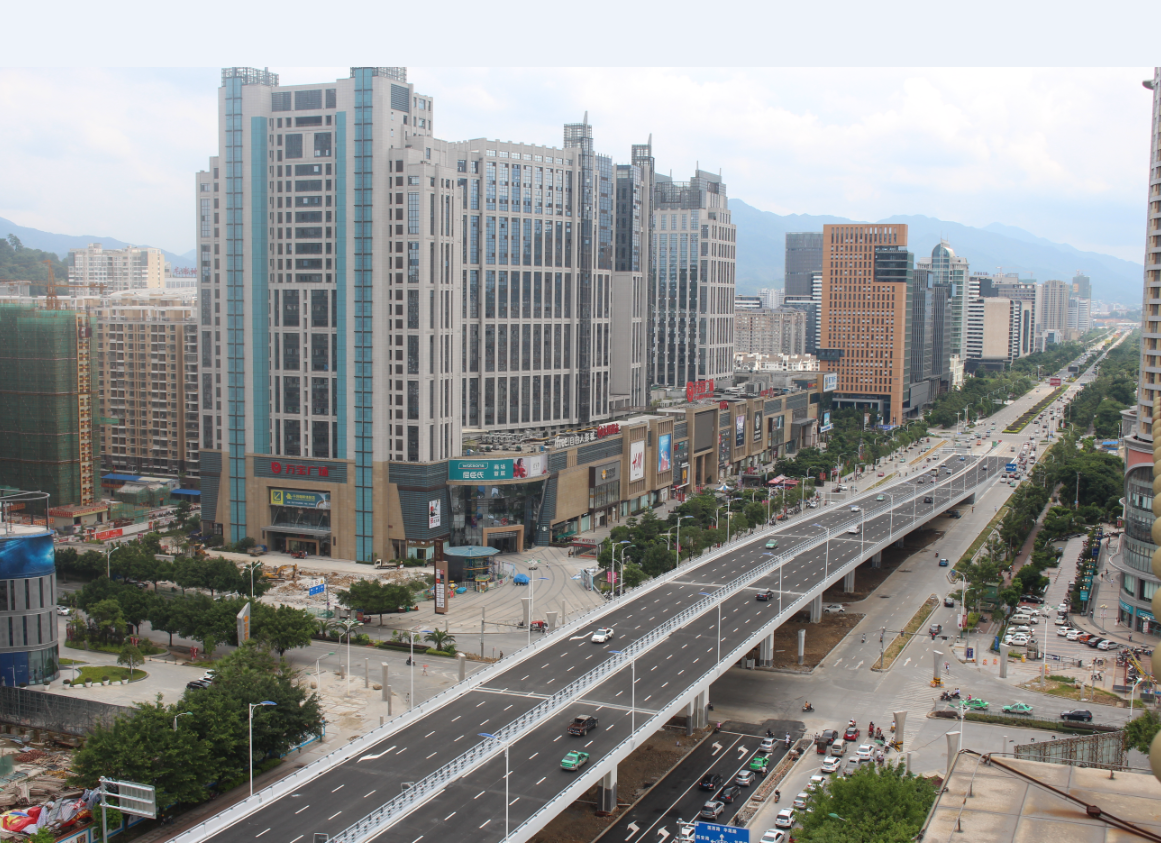 龍巖大道高架橋項目為省、市重點建設項目,是龍巖中心城市連接南北、溝通新老城區(qū)的重要樞紐,項目位于龍巖市南北交通中心軸和景觀軸線龍巖大道上,全長3395m,包含橋梁和地面道路兩大部分,其中橋梁工程總長2329m,橋?qū)?6m,包含一座190+150m獨塔斜拉索鋼箱梁主橋(主橋?qū)?6.3m),全線設計為雙向六車道,設計車速60km/h,在西陂路及人民路處各設置上下匝道,跨越雙洋路、羅龍東路、人民路、登高西路、西陂路城市主干道,項目總投資約24億元。