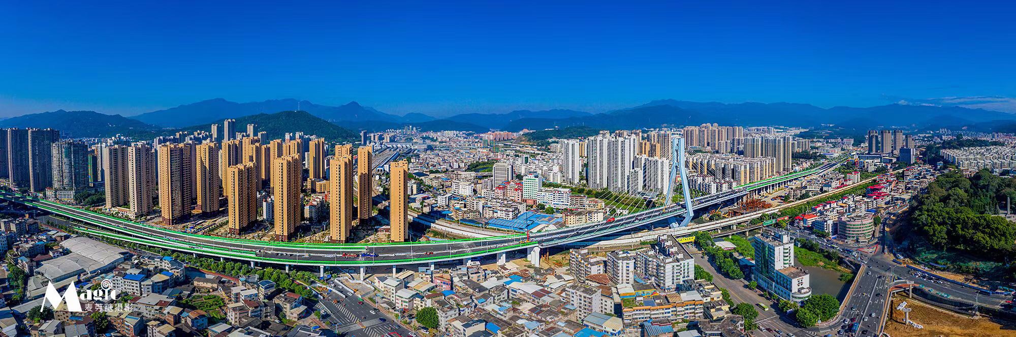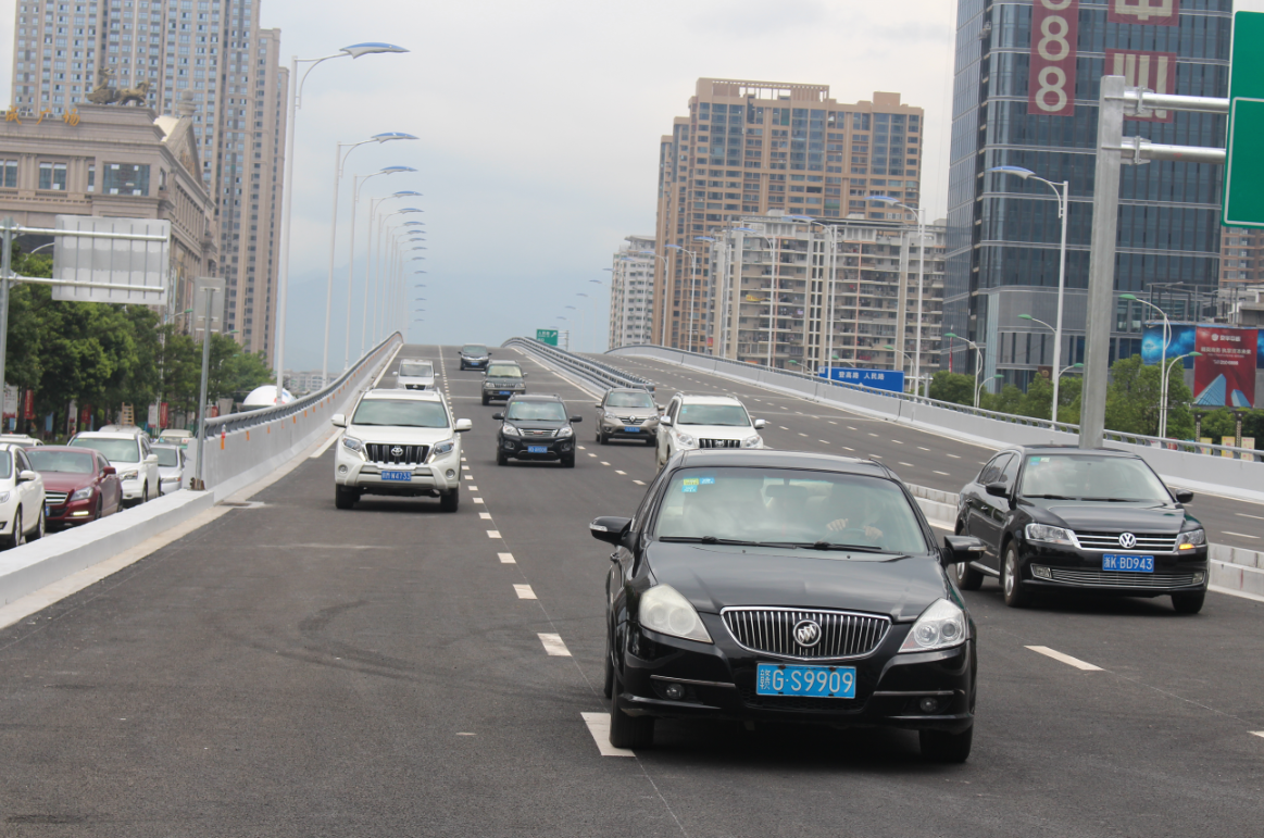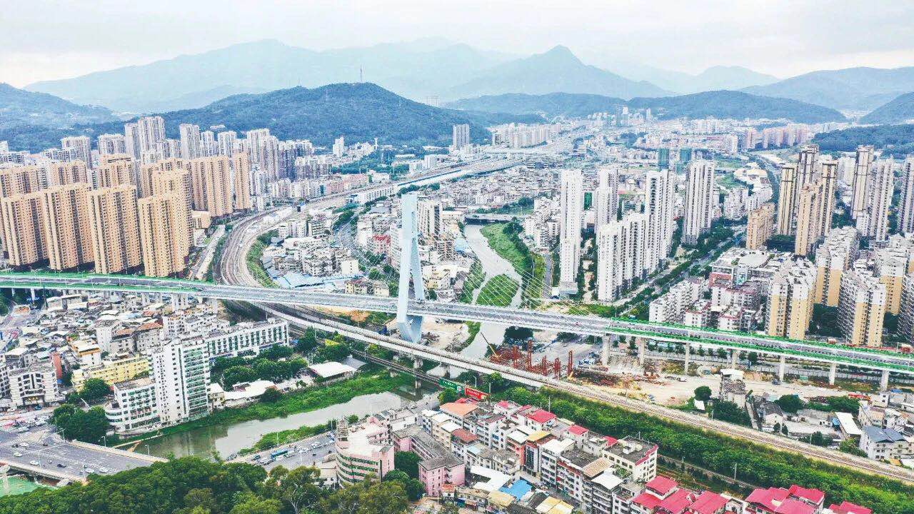 龍巖大橋分為南引橋、中引橋、北引橋和主塔。南引橋2016年6月30日通車,人行道、天橋等附屬工程于2016年11月完工;北引橋西半幅于2016年9月5日通車,東;中引橋地面道路于2017年1月3日實現(xiàn)通車;全線于2020年11月1日正式通車。