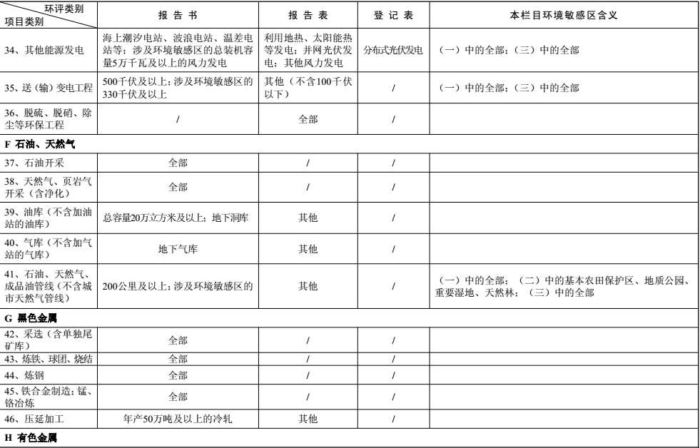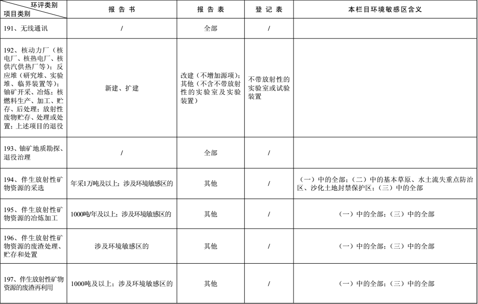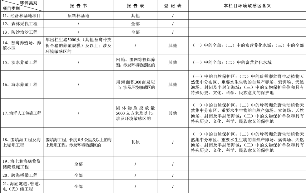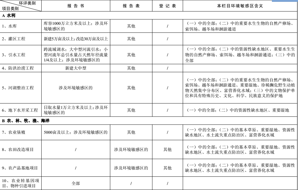 建設項目環(huán)境影響評價分類管理名錄