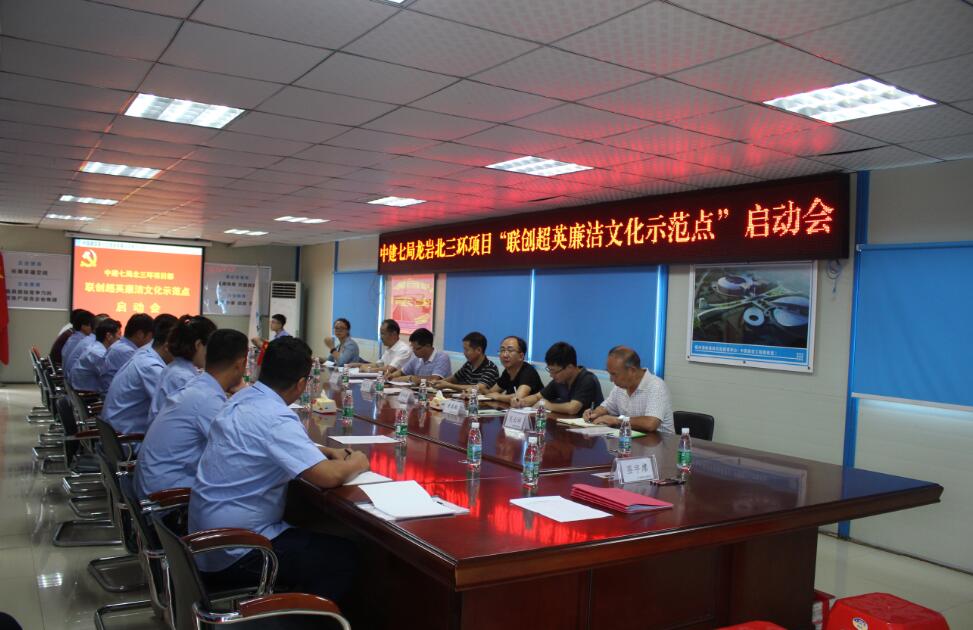 為進(jìn)一步加強(qiáng)項(xiàng)目黨風(fēng)廉政建設(shè)和反腐敗工作,7月18日下午,市城投公司聯(lián)合中建七局南方公司紀(jì)委、福州成建工程監(jiān)理有限公司共同在龍巖北三環(huán)項(xiàng)目召開聯(lián)創(chuàng)“超英廉潔文化示范點(diǎn)”啟動會。