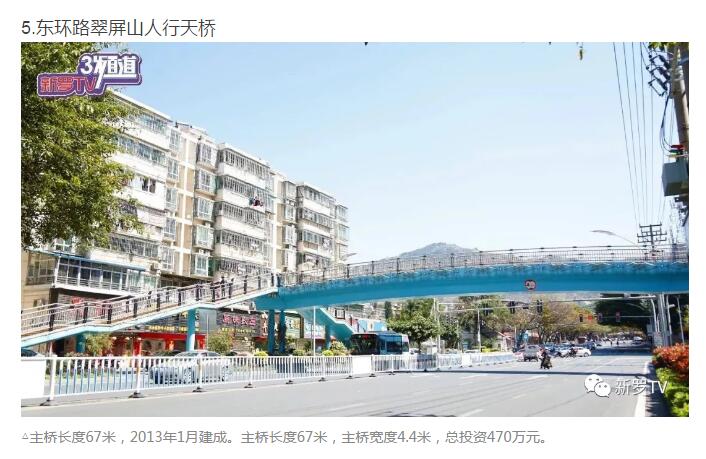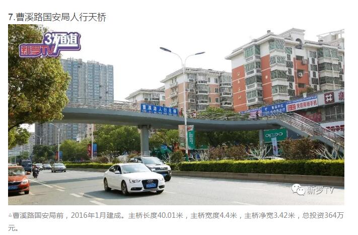 年來,市委、市政府加大市政基礎(chǔ)設(shè)施投入,大力推進(jìn)人行天橋建設(shè)。截止2017年底,中心城市共興建20余座人行天橋。