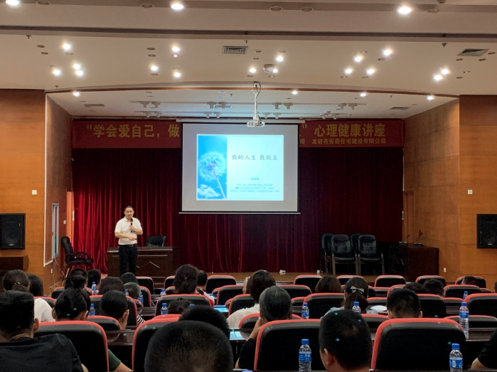 為提高全體員工心理素質(zhì),不斷提升心理健康水平,2019年9月10下午,市城公司和安居公司在建設(shè)大廈四樓第五會(huì)議室共同舉辦“學(xué)會(huì)愛(ài)自己,做個(gè)內(nèi)心強(qiáng)大而溫暖的人”心理健康知識(shí)講座,特邀請(qǐng)龍巖市第三醫(yī)院康復(fù)科劉主任(國(guó)家二級(jí)心理咨詢(xún)師)前來(lái)授課。