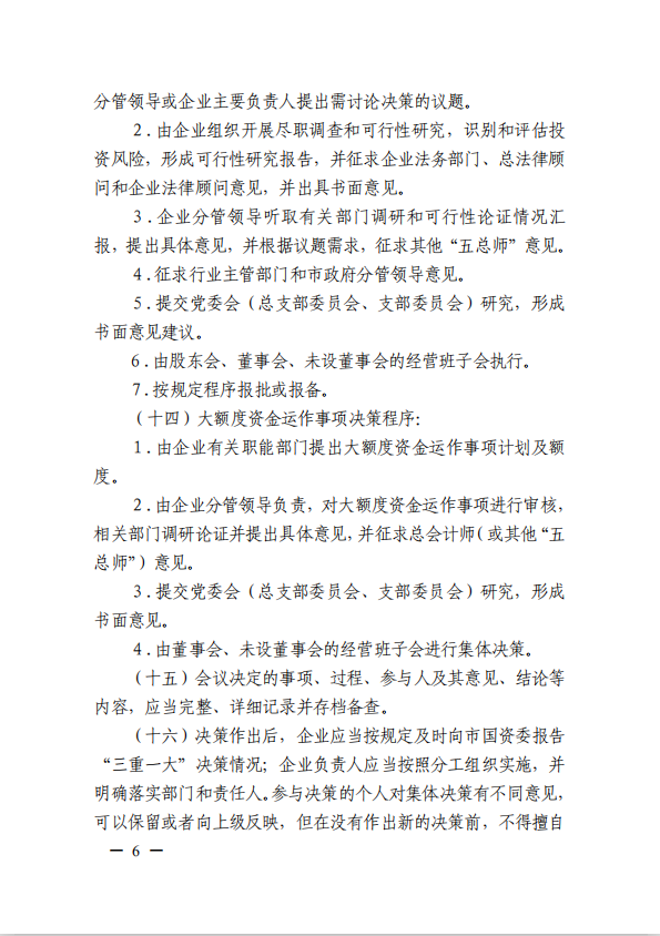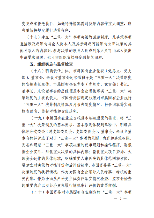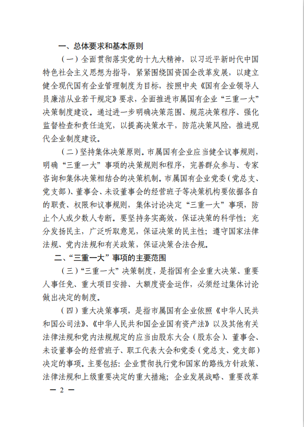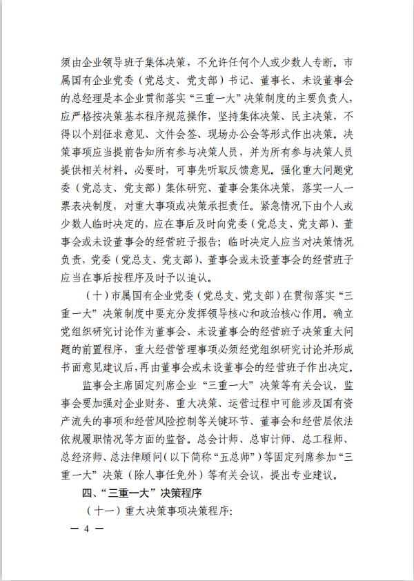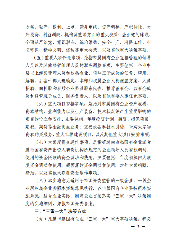 關(guān)于進(jìn)一步規(guī)范市屬國有企業(yè)貫徹落實(shí)“三重一大”決策制度實(shí)施意見(國資黨委[2020]21號)
